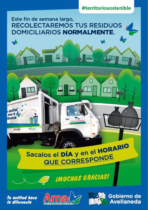 La ciudad de Avellaneda comunicó que este fin de semana largo recolectará los residuos normalmente y piden que los saquen «el día y horario que corresponde».