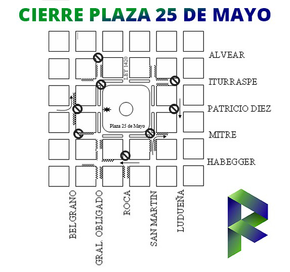 Se realizará un cierre de prevención en Plaza 25 de Mayo, controlando el acceso de automóviles y motos, con especial atención en conservadoras con bebidas alcohólicas.