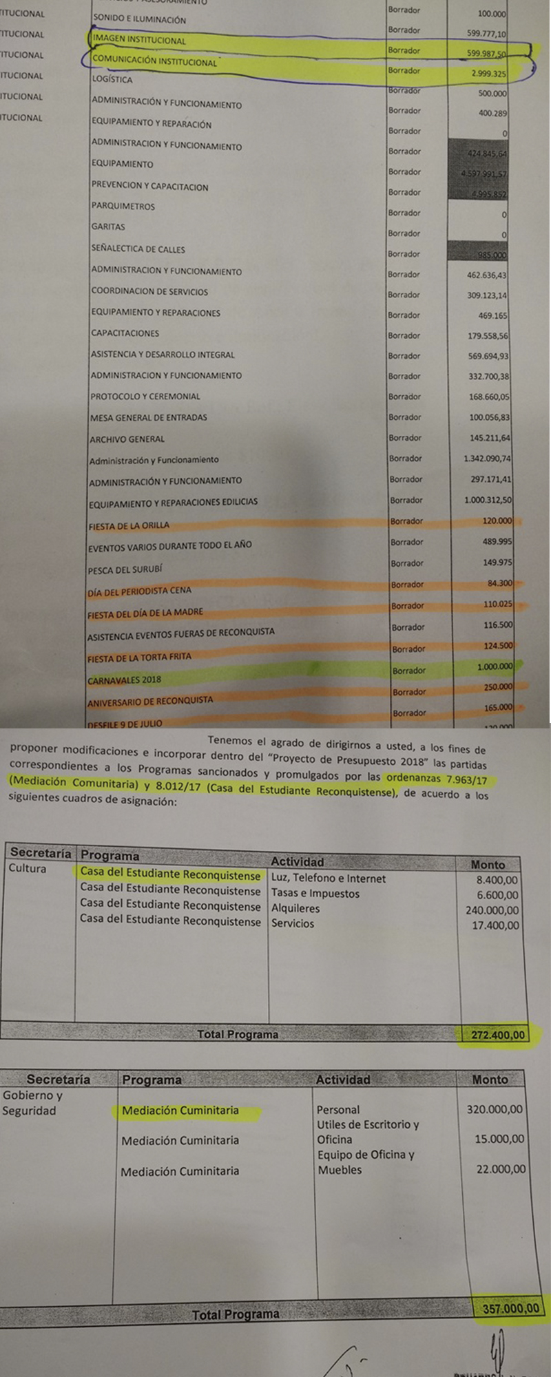 Así lo mencionaron los concejales opositores de la ciudad de Reconquista sobre los gastos que realizará la Municipalidad de Reconquista en 2018.
