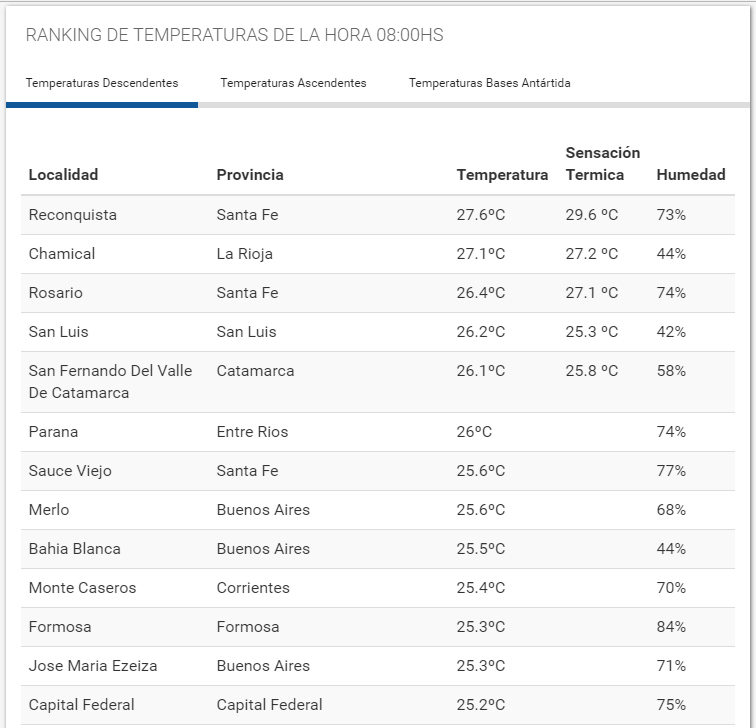 El Servicio Meteorológico Nacional vuelve a colocar, este miércoles 10 de enero, a la ciudad de Reconquista en el tope de las ciudades con mayor temperatura.