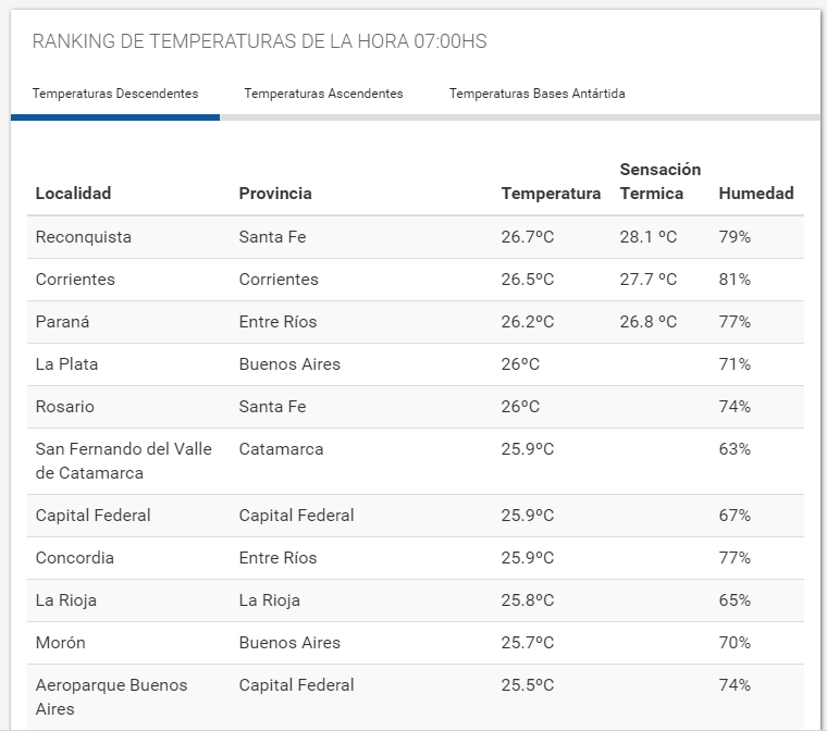 Nuevamente la ciudad de Reconquista en el tope del Ranking que realiza el Servicio Meteorológico Nacional de las ciudades con más calor. Se espera para hoy una máxima de 36 °C y una térmica que superará los 40 °C.