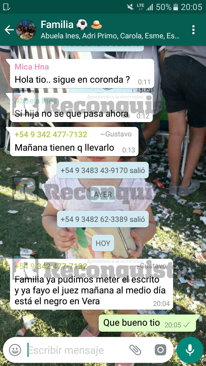 La policía tiene secuestrados dos celulares del único imputado por la desaparición de Rosalía Jara. Reconquista.com.ar pudo acceder a una captura de pantalla del grupo familiar que tiene la familia del detenido. «Todo este tiempo estuvieron espiando lo que decíamos y manipularon el teléfono», se quejaron desde el círculo íntimo.