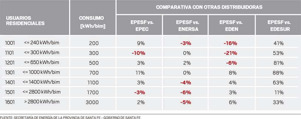 Por otra parte, negó que sea la Epe la empresa distribuidora con tarifas más caras. Y mostró los cuadros que acompañan el texto.