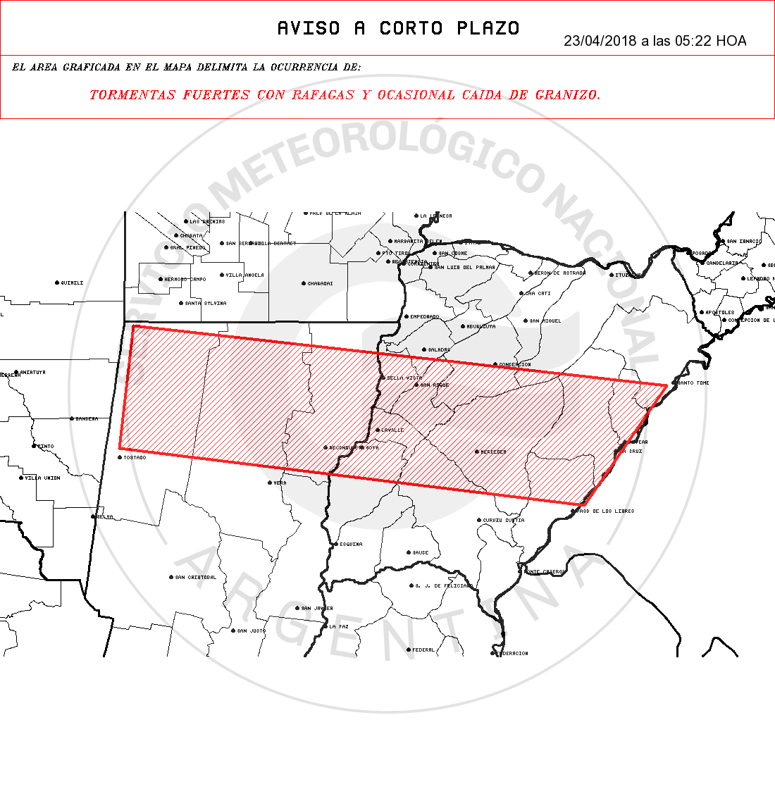 A las 5.22 de este lunes, el Servicio Meteorológico Nacional lanzó un alerta meteorológico para nuestra región.