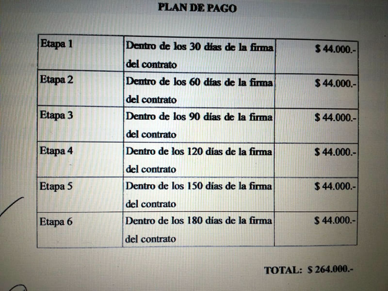 El contrato estipula un pago de $44.000 mensuales.