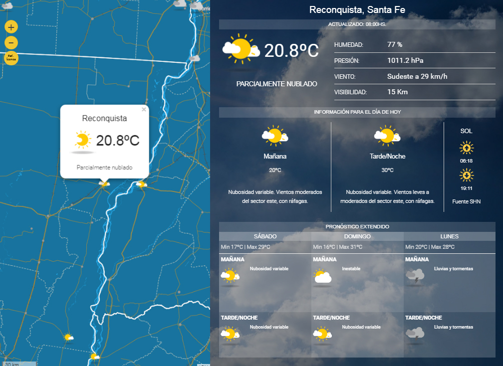 El Servicio Meteorológico Nacional adelanta un buen fin de semana para Reconquista y zona.