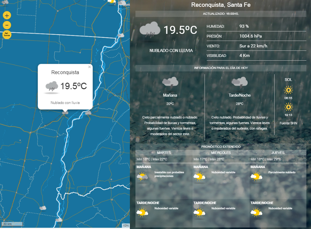 El Servicio Meteorológico Nacional anticipa mal tiempo hasta la mañana del martes inclusive.