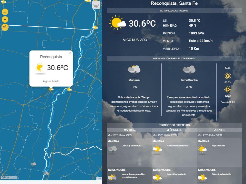 El Servicio Meteorológico Nacional pronostica tiempo inestable para las próximas horas en Reconquista.