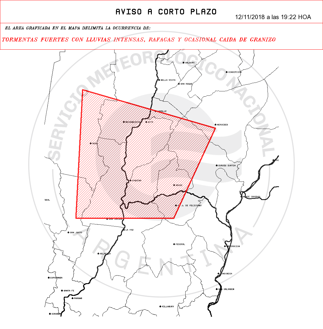 El Servicio Meteorológico emitió un alerta por «tormentas fuertes con lluvias intensas, ráfagas y ocasional caída de granizo».