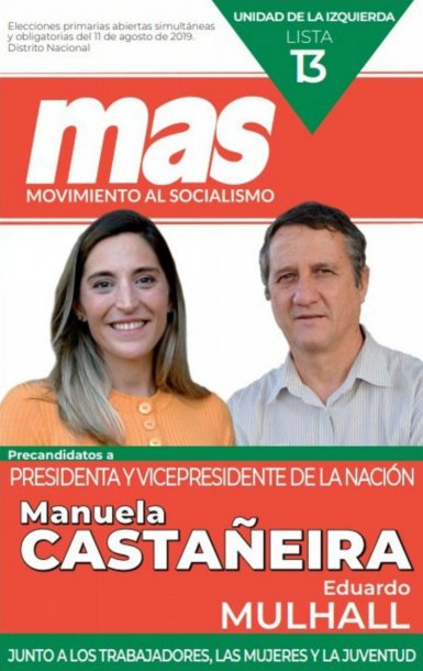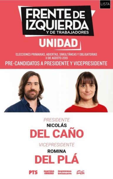 La izquierda irá a las urnas el 11 de agosto por un lado con el Frente de Izquierda y de los Trabajadores (FIT), con Nicolás del Caño y Romina del Pla como pre candidatos a presidente y vice, y por el otro con el Movimiento al Socialismo (MAS) con la fórmula Manuela Castiñeira – Eduardo Mulhall.