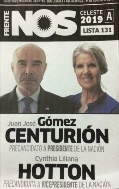 Desde el otro extremo del arco político se pueden encontrar fórmulas como la de José Gómez Centurión y Cynthia Hotton, pre candidatos a presidente y vice por el Frente Nos.