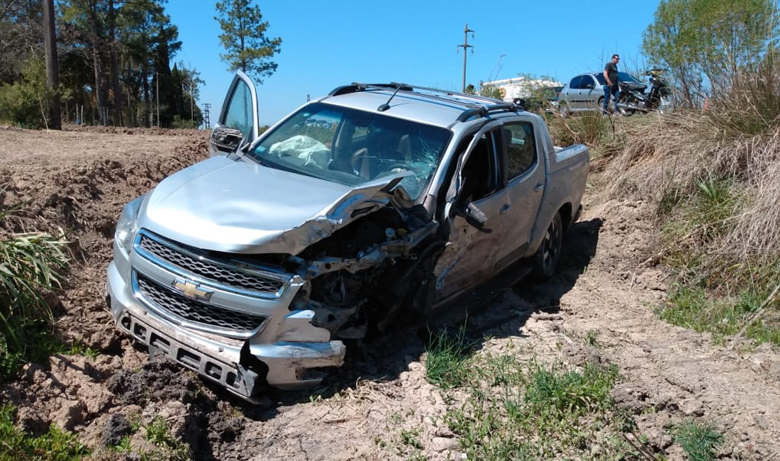 La Kangoo quedó sobre el pavimento mientras que la S10 se despistó y quedó en un zanjón.