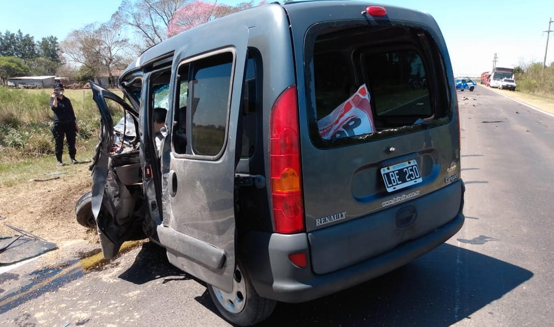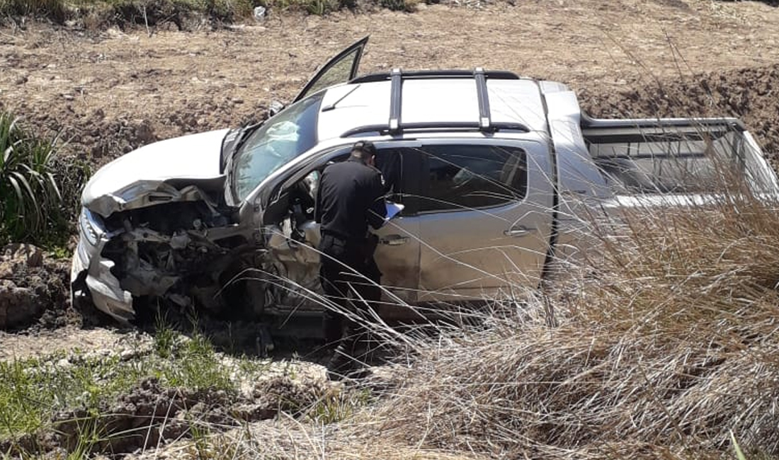 La Kangoo quedó sobre el pavimento mientras que la S10 se despistó y quedó en un zanjón.