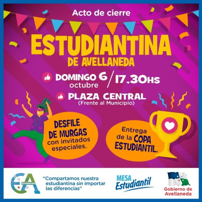 El Gobierno de Avellaneda y la Mesa Estudiantil invitan a la comunidad a participar, este domingo 6 de octubre, del acto de cierre Estudiantina, edición 2019.