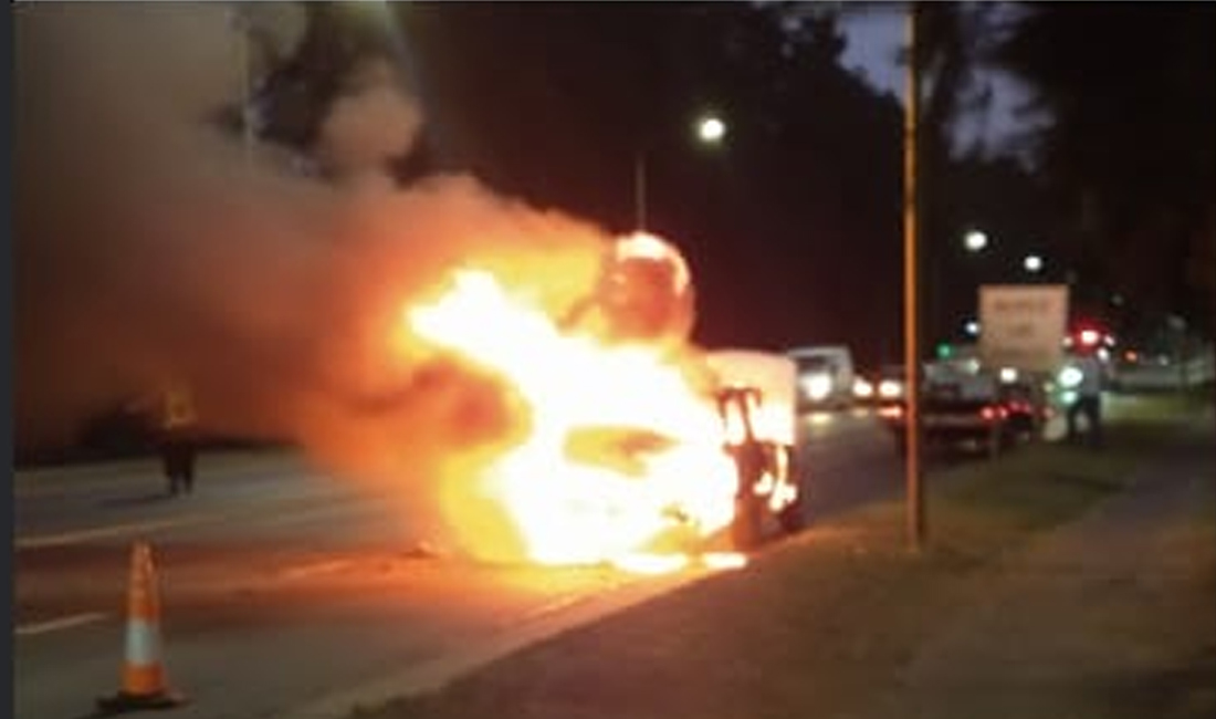 El conductor insultó a los inspectores que lo detuvieron y decidió prender fuego su propio auto.
