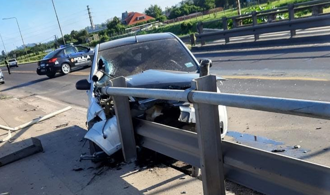 Walter Elbio Ayala, de 40 años domiciliado en barrio Guadalupe de Reconquista, dijo que conducía su Ford Fiesta, patente HER-778 y se durmió y atropelló el guardaraid del puente.