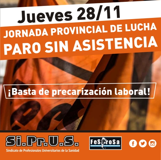 El próximo jueves SIPRUS realizará una jornada Provincial reclamando por los pases a planta de los monotributistas y contra el atraso constante en el pago de los salarios a los mismos, sostén de la cláusula gatillo y reemplazos de los cargos vacantes. También por el pago de los adicionales adeudados y la provisión de los insumos y medicamentos necesarios para brindar salud a la población