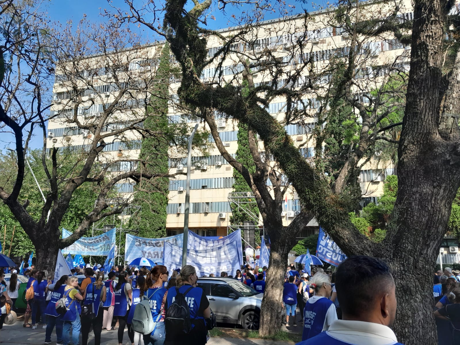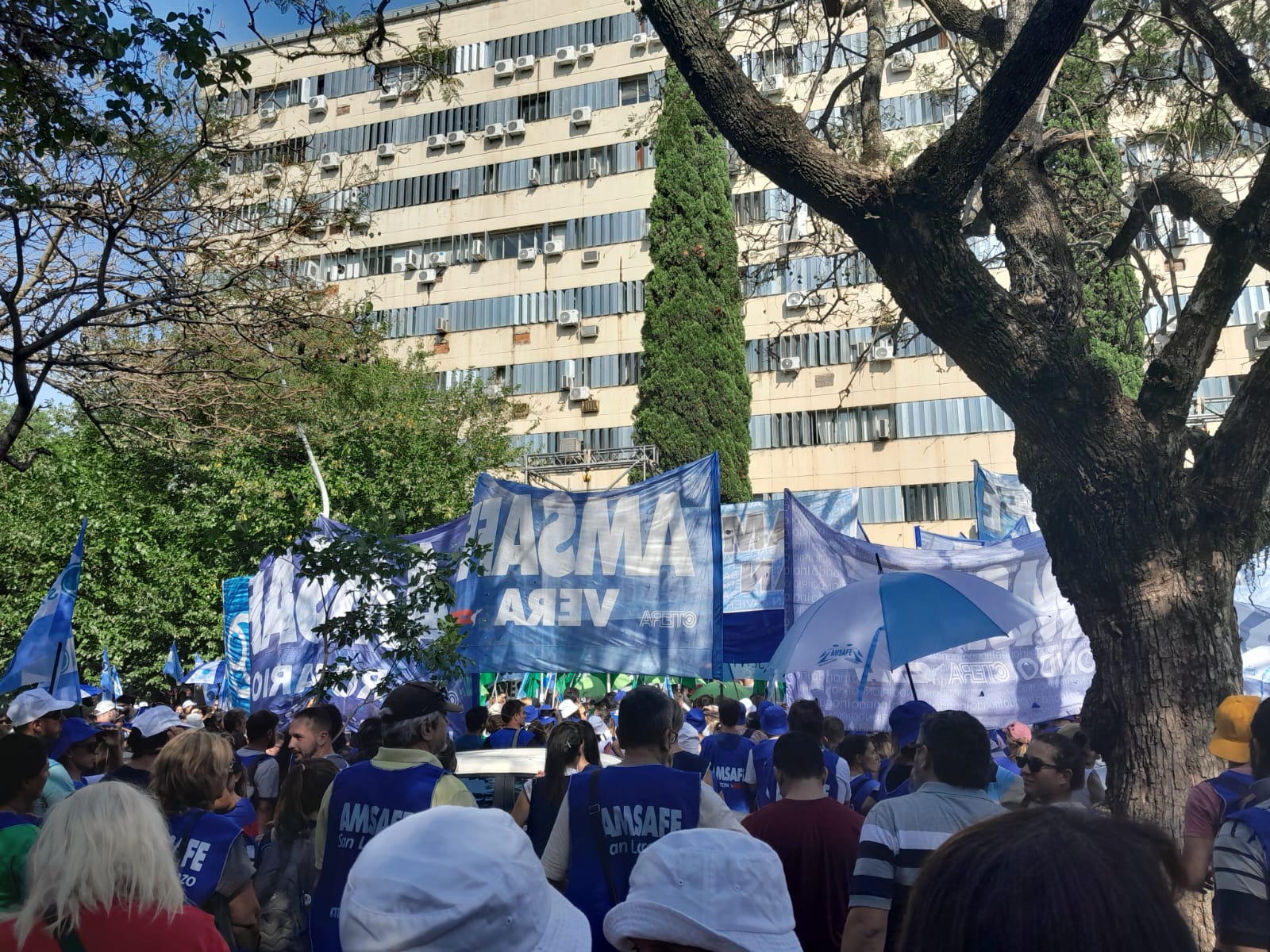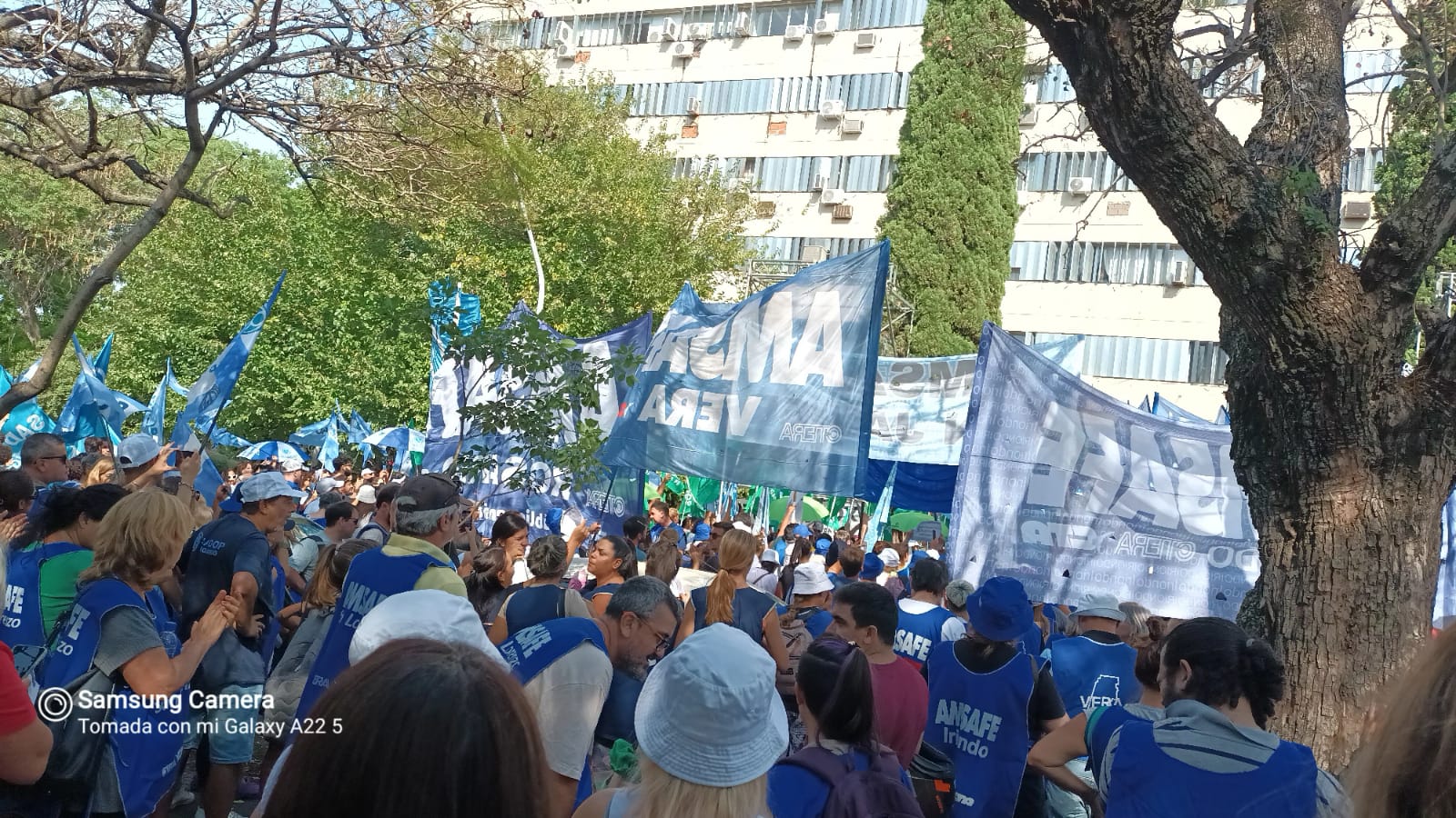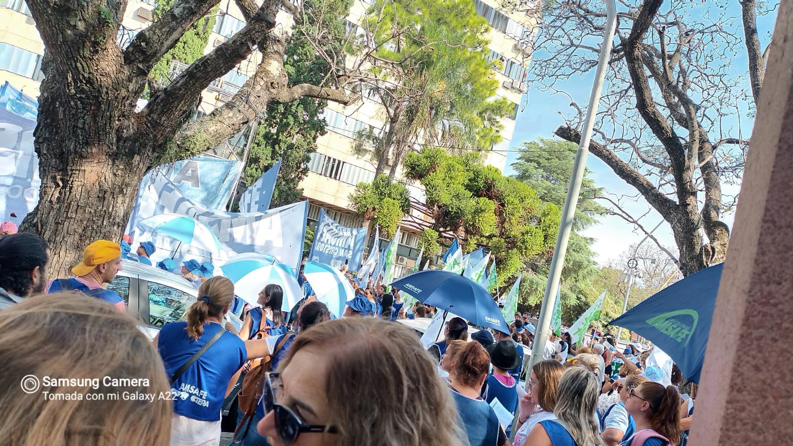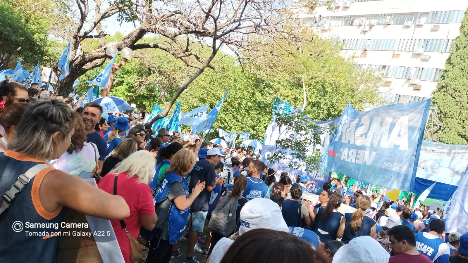 Las escuelas están cerradas y los docentes movilizándose por un salario que le gane a la inflación. Arranca la marcha frente al Ministerio de Educación, en la capital santafesina.