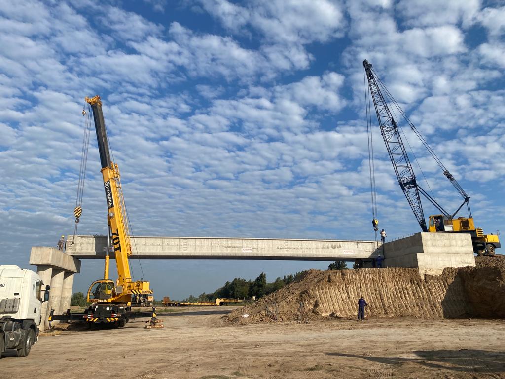 Durante las últimas semanas, a través de operativos coordinados con la Agencia Provincial de Seguridad Vial, comenzaron a llegar a la zona las nuevas vigas longitudinales, compuestas de hormigón pretensado y de una longitud de 30,86 metros de largo. Fueron fabricadas en la ciudad de Campana (Buenos Aires). Dada la longitud se trasladan de a dos unidades, acompañadas por móviles de las empresas contratistas que anuncian el recorrido a los usuarios. El nuevo puente tendrá una extensión de 308 metros y estará conformado por 10 tramos pretensados que conformarán una calzada de 8,30 metros de ancho y 1,55 de veredas por lado. Cabe destacar que se colocarán 40 vigas sobre las 9 pilas (que cuentan con tres pilotes-columna y un cabezal superior cada una). Una vez desarrolladas esas tareas, se conformarán los terraplenes de acceso al puente, la protección contra erosión de los estribos con manta geotextil y hormigón con geoceldas que eviten socavones. Con un presupuesto actualizado de $2.762.180.186,24 los trabajos se encuentran en el orden del 55% de ejecución y están a cargo de la U.T. conformada por las empresas Rinaudo Cía. Constructora S.R.L., Del Sol Constructora S.A. y Werk Constructora S.R.L.