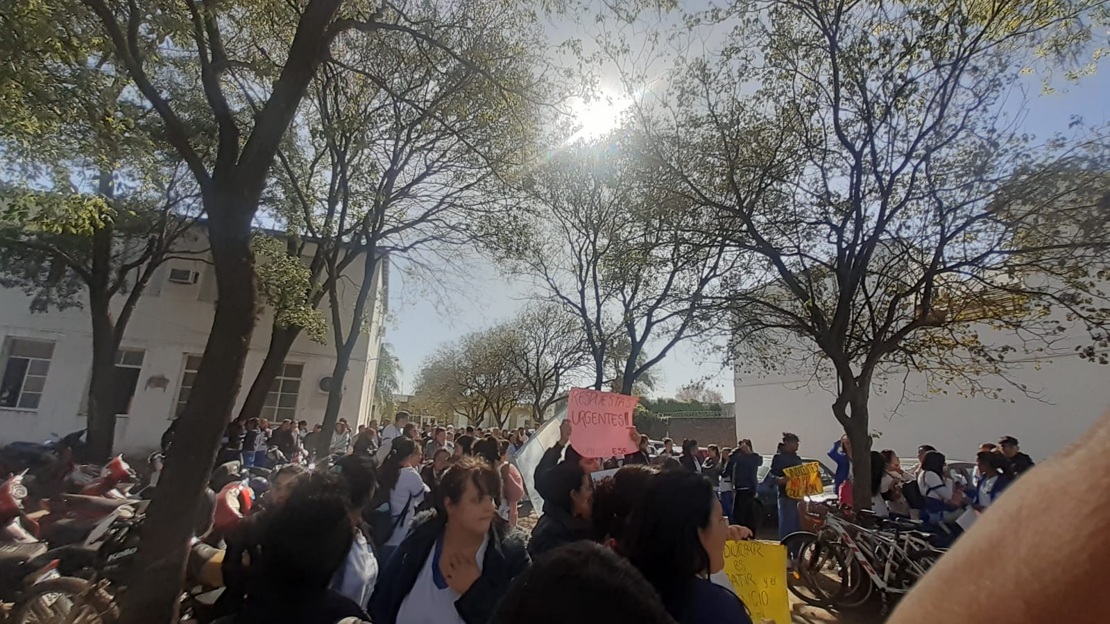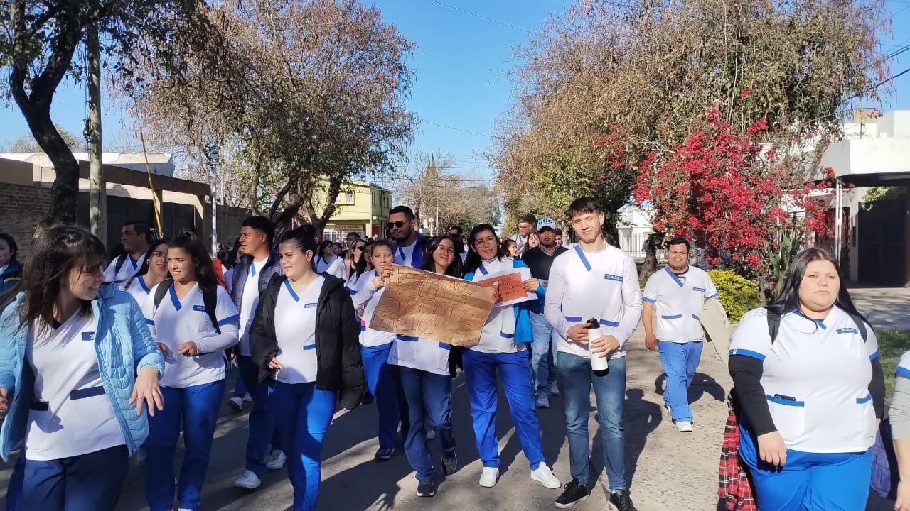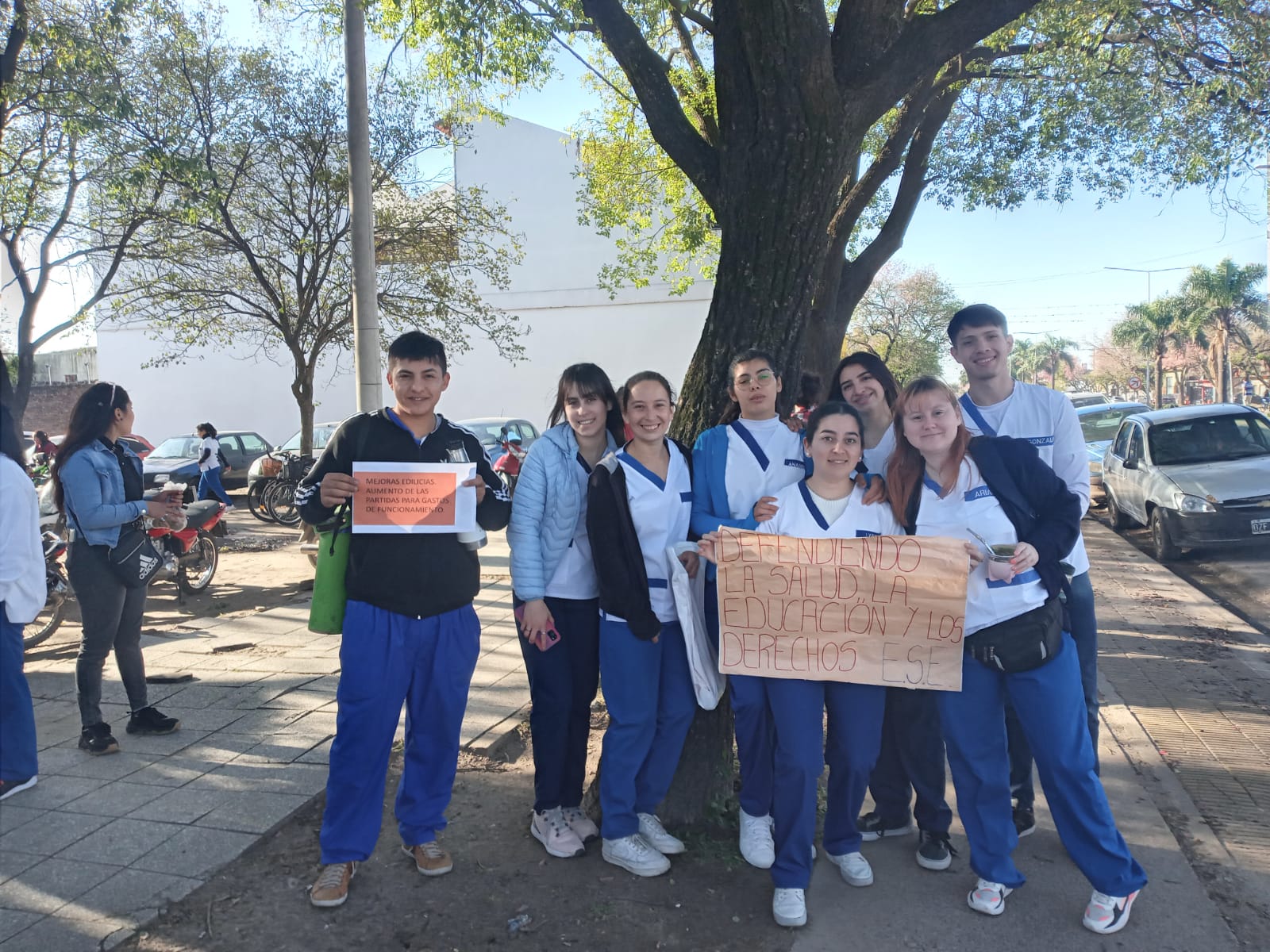 Los estudiantes se manifestaron de manera pacífica hoy 13 de septiembre por la Ruta 11 hasta calle Rivadavia. Llegaron al nodo, donde pegaron carteles. Siguieron por calle Newbery y volvieron al hospital.