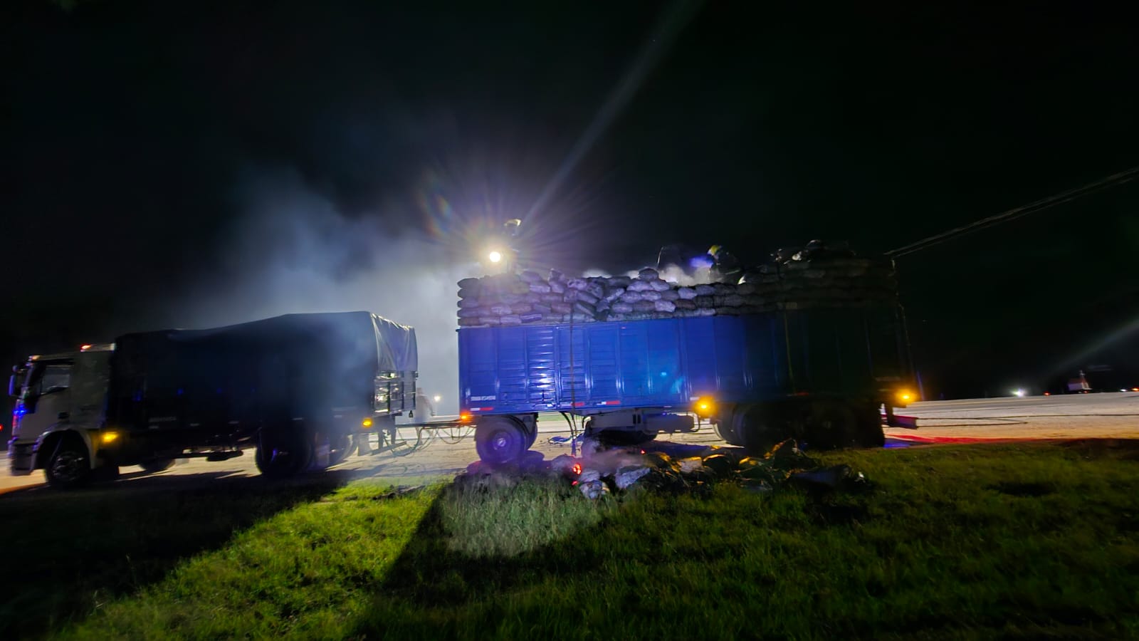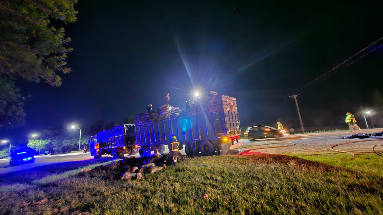 Este domingo 7 de enero, a las 01.15 horas, en Avellaneda, se incendió un camión con una carga de carbón. Estaba estacionado en Ruta 11, a la altura de Dolbi.