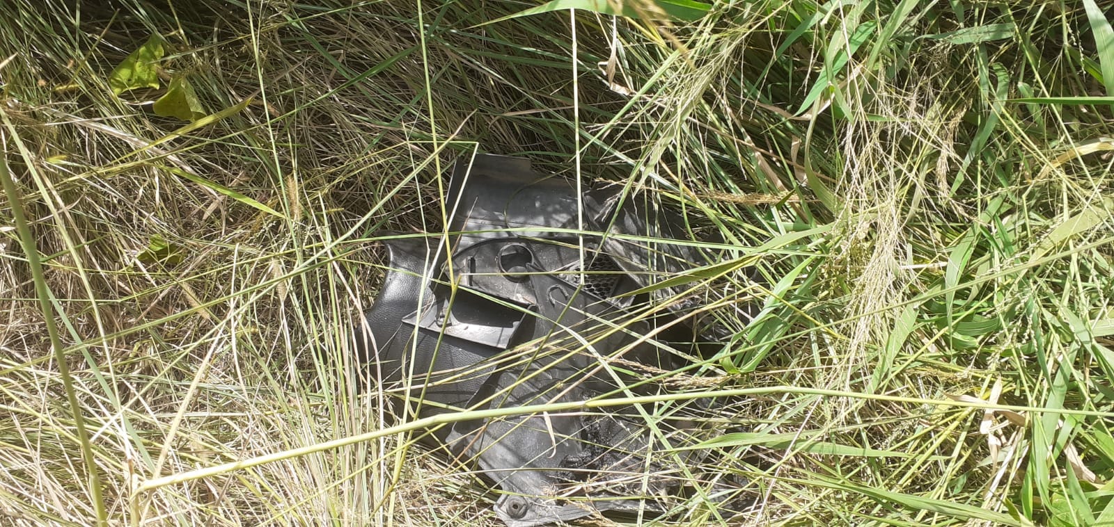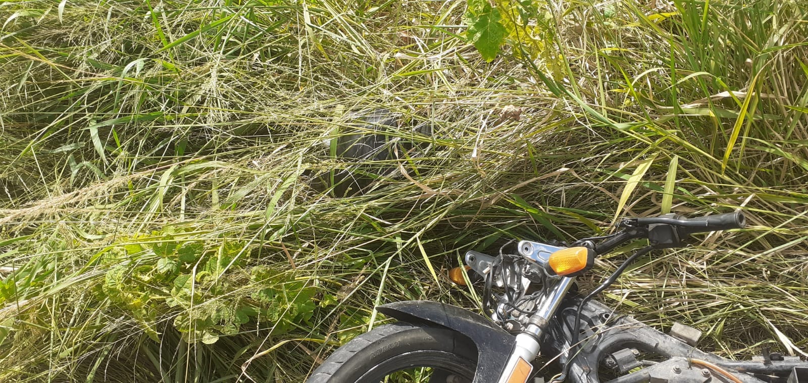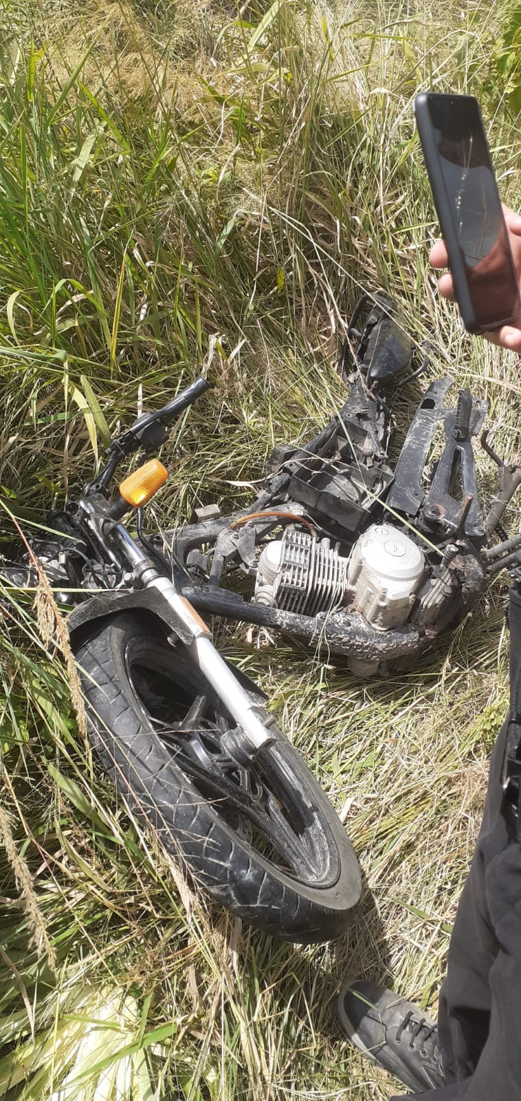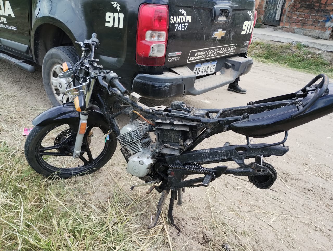 Este mediodía de jueves 22 de febrero, encontraron una moto desarmada en un campo cercano a barrio La Loma. Estaba escondida entre los pastizales.