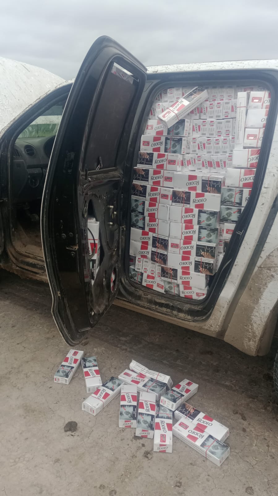 Se los detuvo y les secuestraron las camionetas. En ellas llevaban 2971 cajas de cigarrillos Rodeo, dinero en efectivo (moneda nacional y paraguaya), teléfonos celulares y documentación. Los hombres fueron identificados como: Maximiliano Bobadilla Magno (34), Javier Fabio Barrio (21), Juan Rolando Aguirre (49), Aldo Javier Meza (38), Leonardo Mariano Roman (34) y Lucas Santiago Martínez (19).