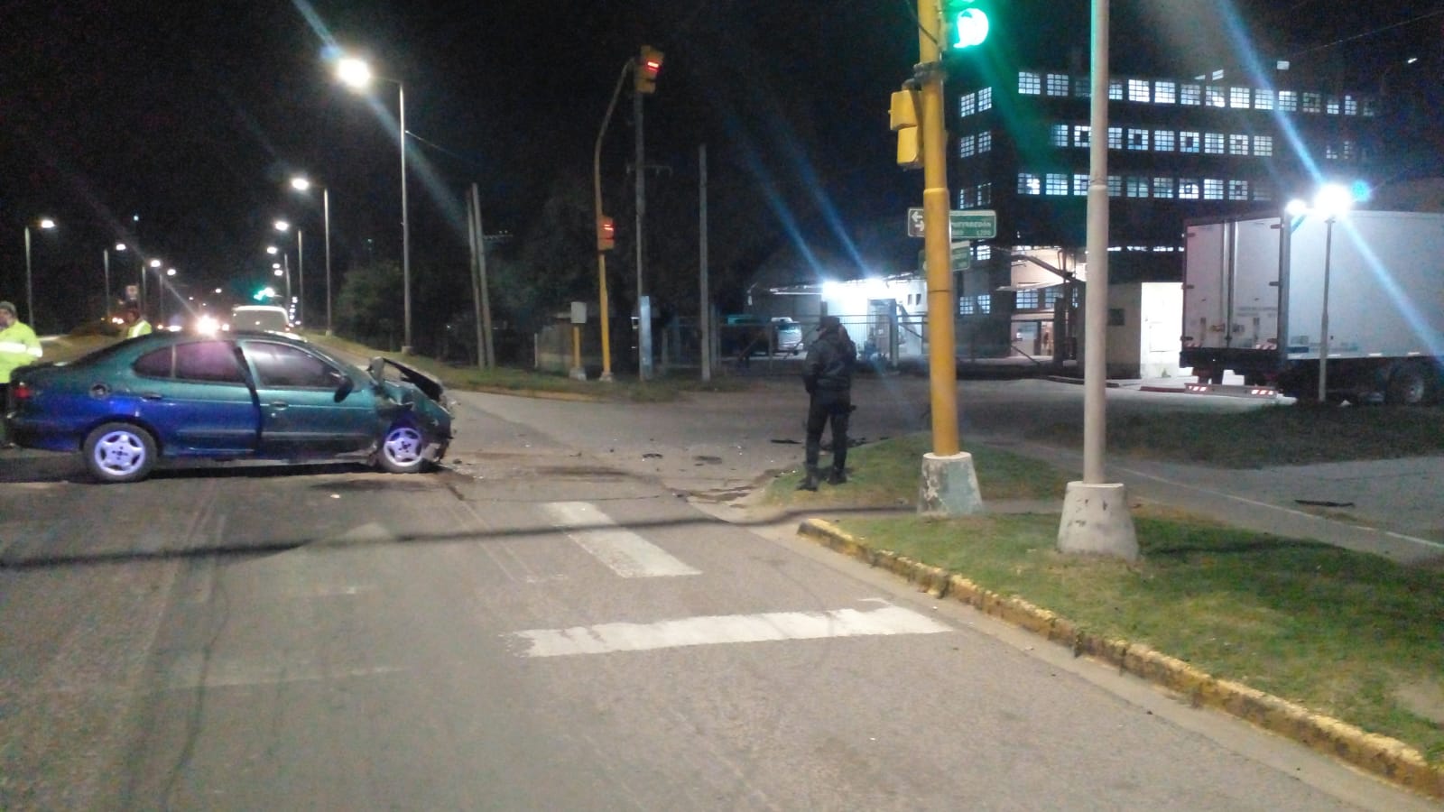 Esta madrugada, alrededor de las 5.25 horas, se registró un siniestro vial muy violento en la intersección de calle Pueyrredón y el Bv. Hipólito Irigoyen. Fueron protagonistas un camión furgón térmico Iveco y un automóvil Renault Megane.