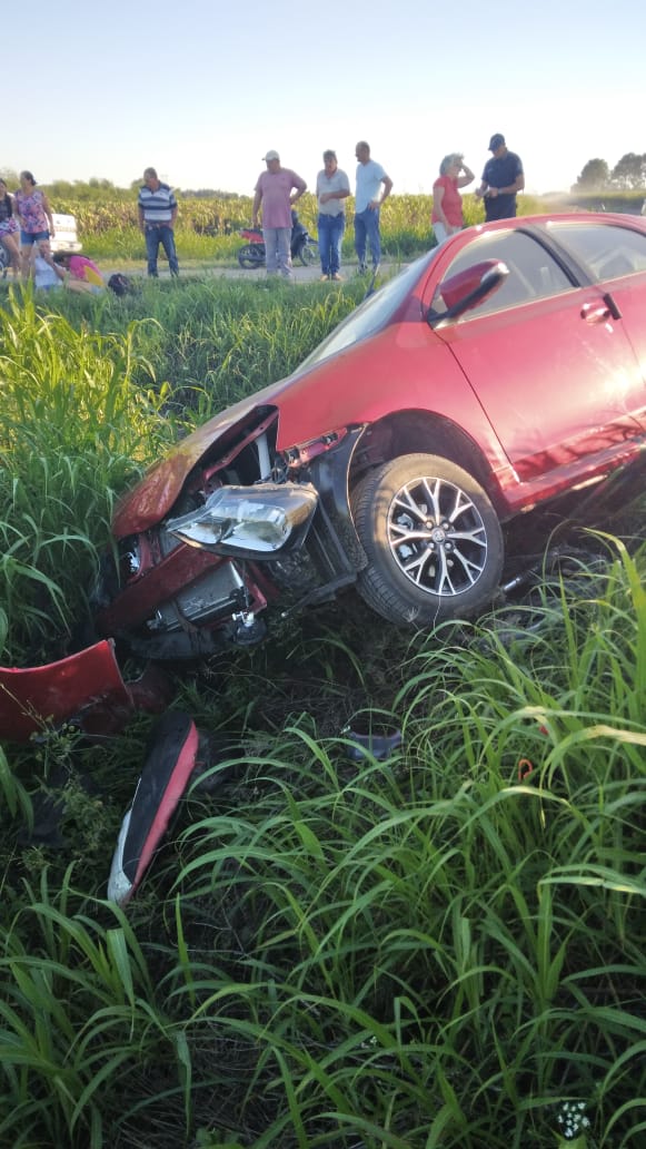 Por motivos que se investigan, un automóvil KIA Cerato, conducido por por Alán Delbón, de 29 años, perdió el control y terminó su recorrido en la banquina. Lo acompañaban Milagros Feresin (23) y Claudia Leme (54).