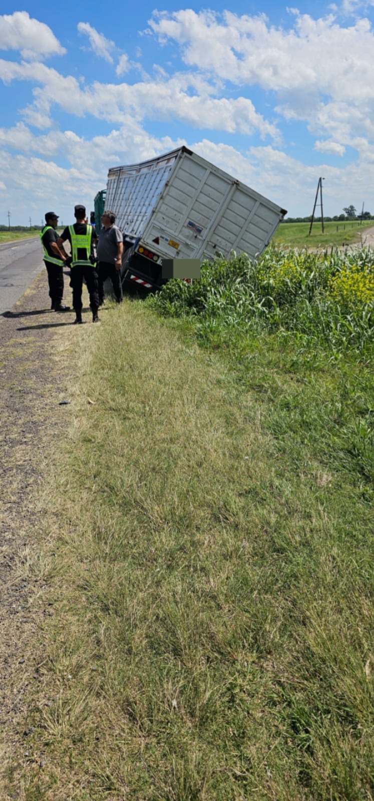 Se trató de un camión Ford Cargo con acoplado, conducido por un hombre mayor de edad domiciliado en La Pampa, quien explicó a los efectivos que, tras estacionar en la banquina, no advirtió la presencia de la alcantarilla y una de las ruedas del vehículo cayó en ella.