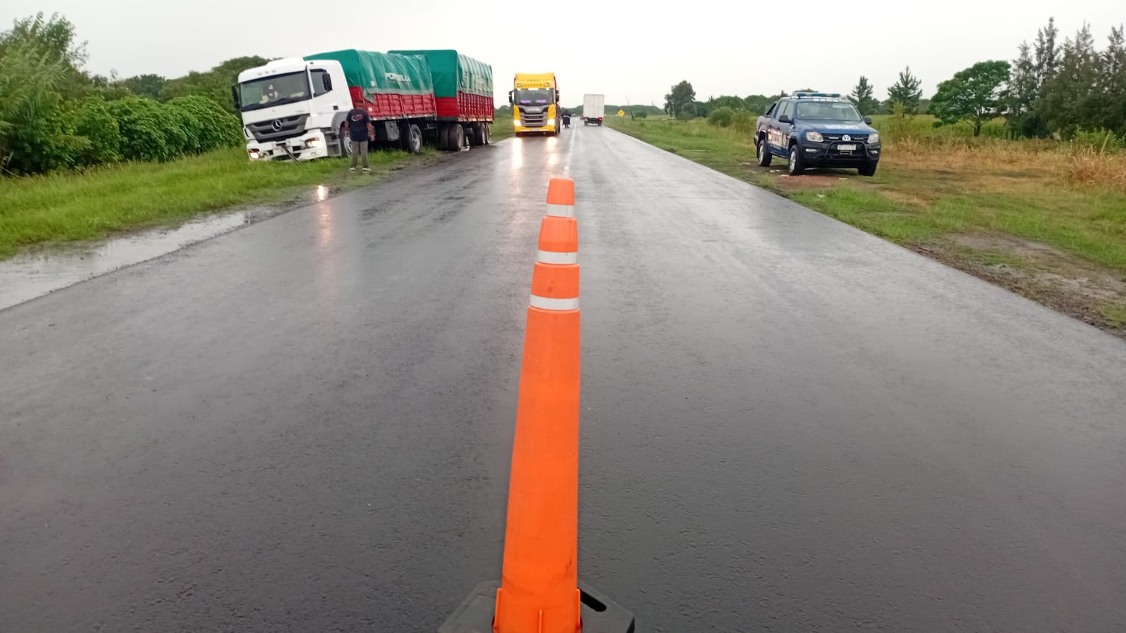 La ruta permaneció parcialmente interrumpida por unos minutos mientras se removía el pesado rodado de la banquina, normalizándose el tránsito poco después de las 10:35.